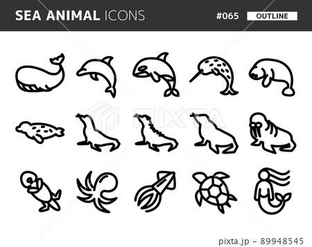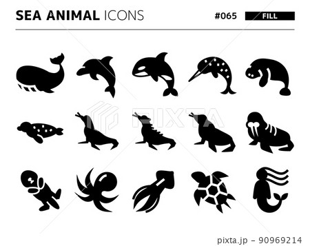 海獣に関連する塗りつぶしスタイルのアイコンセット_065