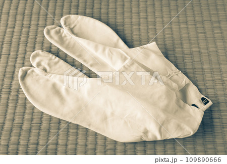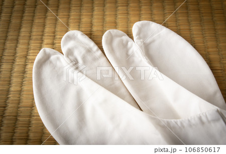 畳に置かれた足袋 白足袋 四枚こはぜ