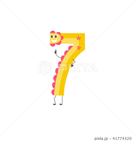 Number seven cute cartoon character for teaching children or birthday invitation.