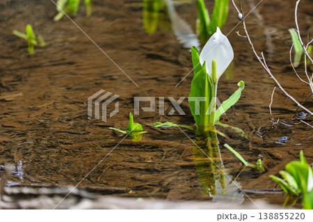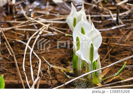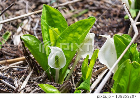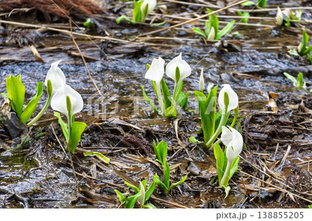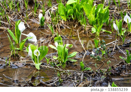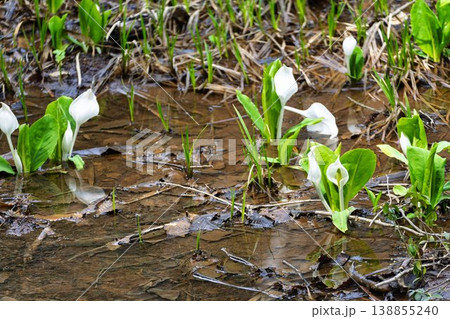 玉の木原水芭蕉群生地のミズバショウ 宮城県七ヶ宿町