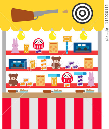 シンプルな縁日の射的の屋台のイラスト