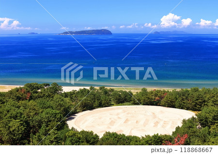 【香川県】晴天の銭形展望台から見た 銭形砂絵(琴弾公園)
