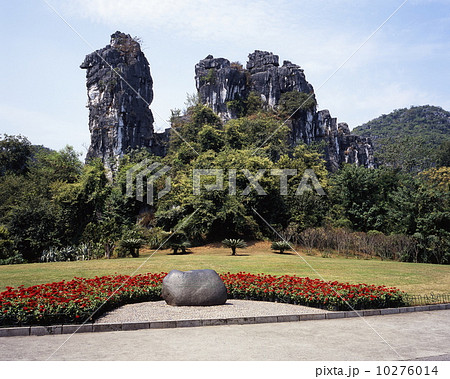 乾けば消える水で書かれた文字 中国は桂林の七星にてにて