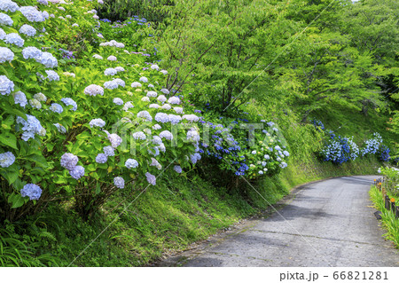 世界遺産吉野山の新緑と七曲坂に咲く満開の紫陽花