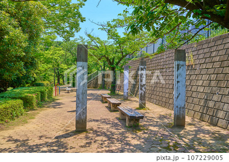 新緑の東京都稲城市東長沼の七曲見晴児童公園