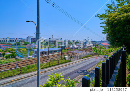 新緑の東京都稲城市東長沼の七曲見晴児童公園から北側の眺望
