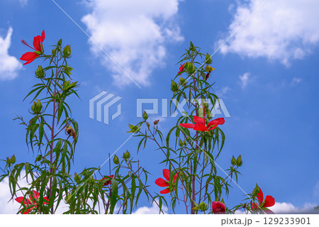 空に向かって咲く赤い花