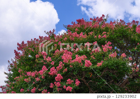青空に映える百日紅のピンクの花