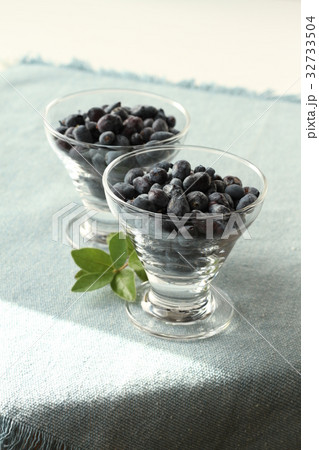 グラスに入ったハスカップの実、摘みたて、北海道産