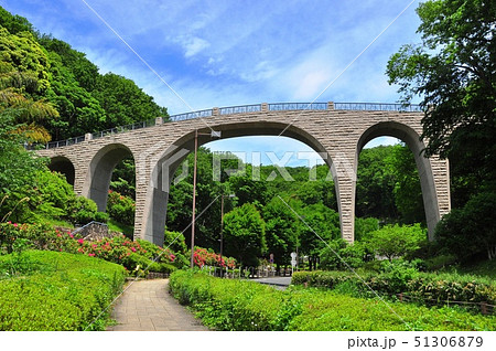 《七沢森林公園》新緑の公園にかかるアーチ橋(神奈川県厚木市)