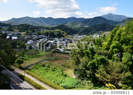 厚木市 七沢温泉郷の町並みと大山などの山並み(七沢森林公園からの眺望)
