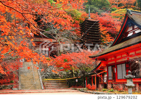 【奈良県】談山神社の紅葉(十三重塔と神廟拝所)