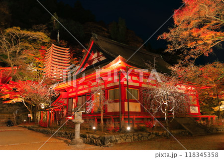 【奈良県】談山神社の紅葉ライトアップ(十三重塔と神廟拝所)