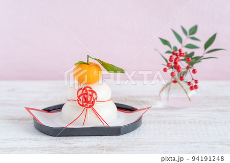 鏡餅と南天の葉と万両の実のアレンジ
