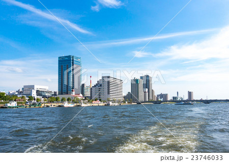 信濃川を走る水上バス乗り場から見た風景 (信濃川ウォーターシャトル)