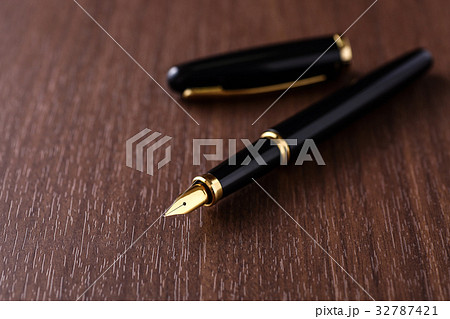 手紙を書くイメージ 縦書き罫線用紙と万年筆ペン 写真素材