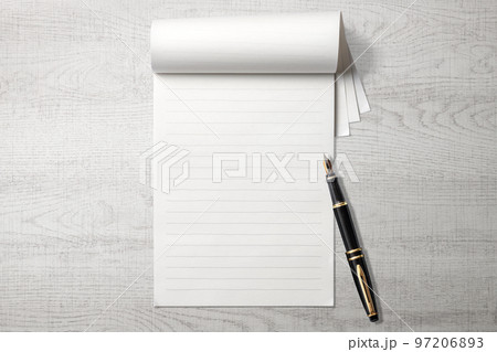 便箋、もしくはノートと万年筆。手紙、執筆のイメージ