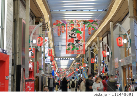 お正月の飾り付けがされた商店街(大須商店街、万松寺通 名古屋市 中区)