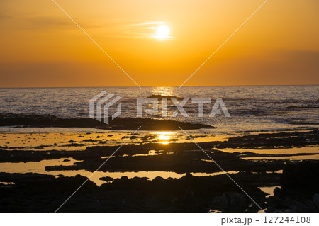 佐渡島 万畳敷(沢崎海岸)の夕日