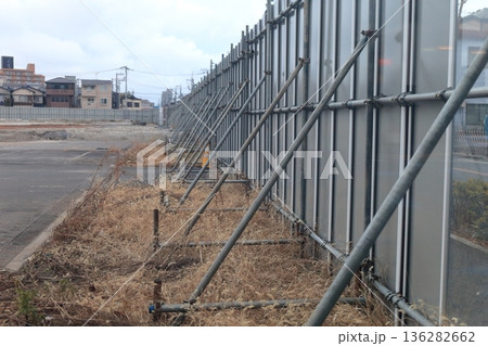 仮囲い(万能鋼板)裏側の単管支柱