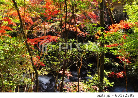 湯河原の町並み 万葉公園の紅葉と千歳川