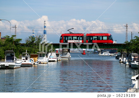 新湊 内川の水路 立山連峰と万葉線 射水市