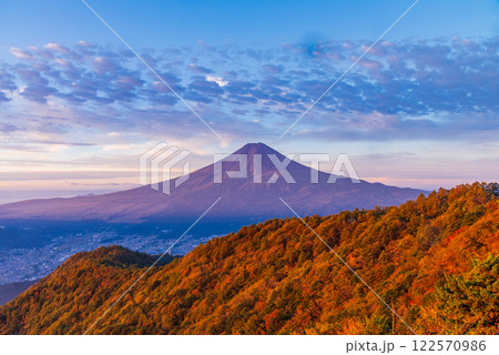 【山梨県】紅葉が美しい三ツ峠山から望む富士山 早朝