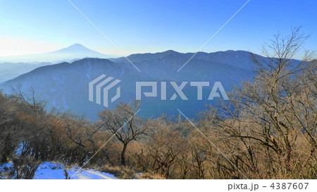 丹沢の三ノ塔山頂より 雪の頂から望む雪化粧の富士山と表丹沢のパノラマ