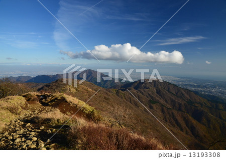 神奈川県秦野市の二ノ塔に向う表尾根登山道の1100mから東側の大山方面を見る