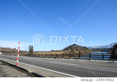 最上川三難所 三ヶ瀬橋と青空 山形県