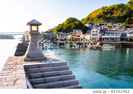 水彩画風 安芸灘とびしま海道 下蒲刈島 三之瀬地区 常夜燈 広島県呉市