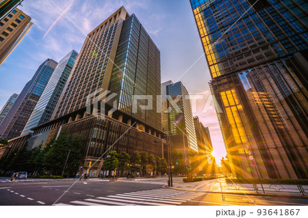 東京都千代田区皇居外苑の皇居前広場と丸の内ビル街