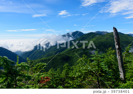 南アルプス塩見岳山頂からの 中央アルプス 空木岳 南駒ヶ岳 遠景