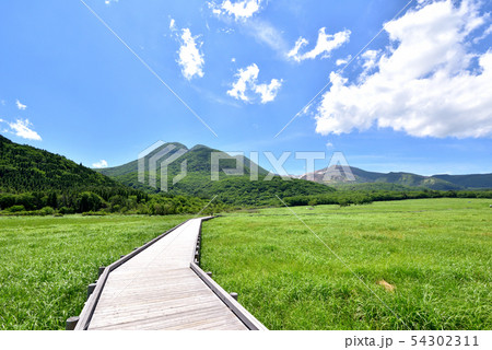 くじゅう長者原からの三俣山1745m タデ原湿原自然研究路 夏色のくじゅう連山 大分県九重町