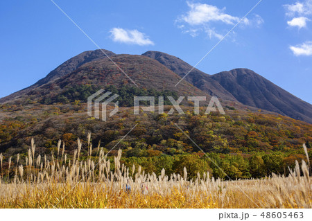 くじゅう長者原からの三俣山1745m タデ原湿原自然研究路 秋色のくじゅう連山