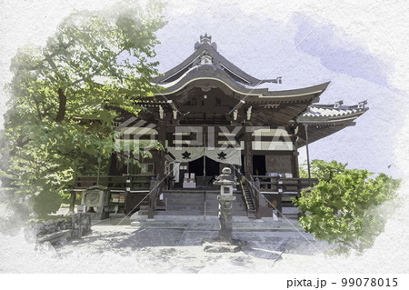 水彩画風 橘寺 観音堂 奈良県明日香村