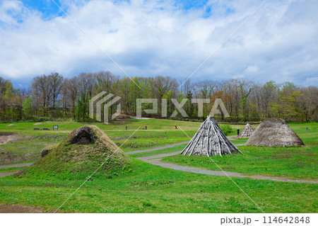 世界文化遺産三内丸山遺跡の竪穴建物跡【エディトリアル使用限定】