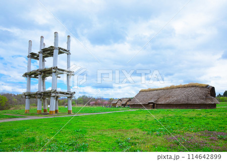 世界文化遺産三内丸山遺跡の掘立柱建物跡【エディトリアル使用限定】