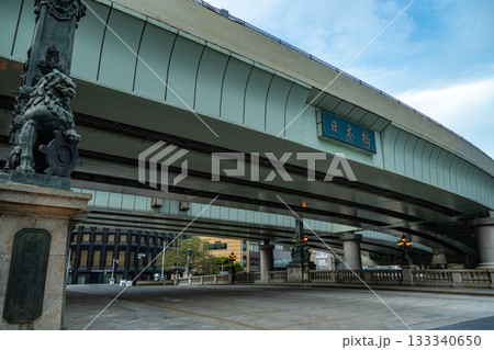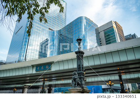 東京・日本橋 日本橋親柱の獅子像と東京市章