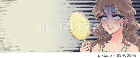美容広告バナー・鏡を持って青ざめる厚化粧の女性