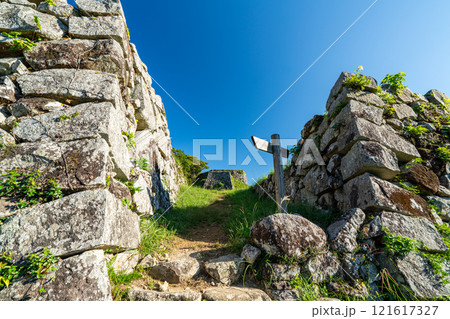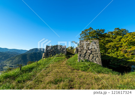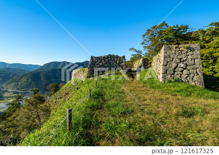 【日本100名城】秋の朝の津和野城 南門跡と本丸の石垣 島根県鹿足郡津和野町