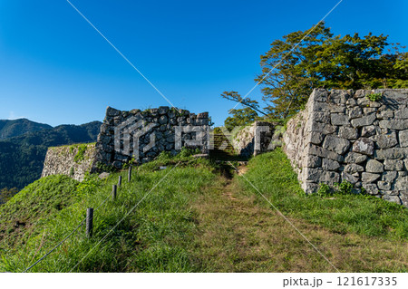 【日本100名城】秋の朝の津和野城 三十間台虎口の石垣2 島根県鹿足郡津和野町