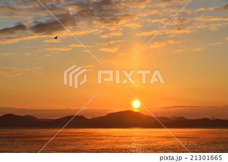 広島県三原市 海霧流れる瀬戸内の日の出 筆影山展望台より