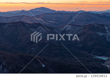 御坂山地・雪頭ヶ岳から見る夜明けの山中湖