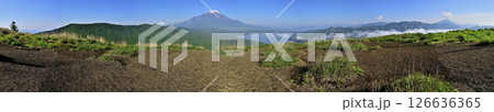 丹沢の鉄砲木ノ頭(明神山)山頂より望む富士山と山中湖 パノラマ