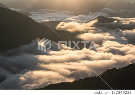 一ノ倉岳から見る日の出 谷川連峰の山岳風景