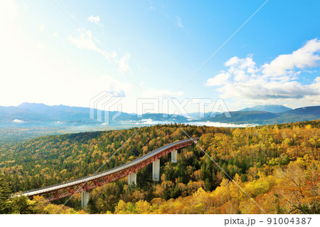 秋晴れの三国峠 松見大橋 国道273号線 北海道上士幌町
