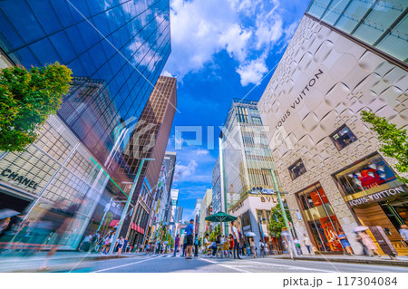 日本の東京都市景観 銀座の街並みを望む(歩行者天国)