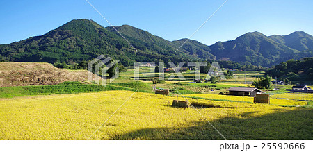 稲穂 黄金色 収穫前 三河内の棚田 三つ子山