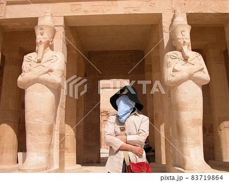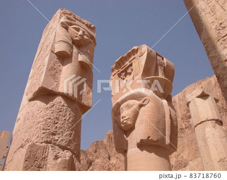 ルクソールのハトシェプト神殿のファラオ石像、エジプト